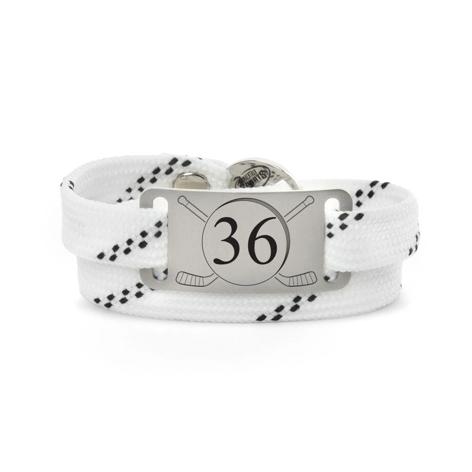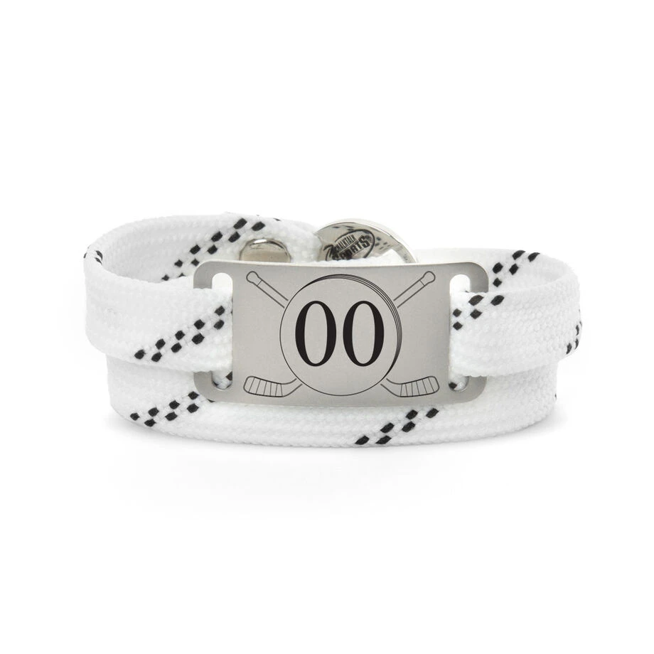 Our adjustable hockey lace bracelets with engraved aluminum slider make for the perfect gift for any hockey player, team or coach to show that hockey pride. Our hockey lace bracelet is hand-made from actual hockey laces and by far the sweetest bracelet for any serious hockey player. With an engraved aluminum slider, this will be sure to give that bracelet an extra hockey touch. Each bracelet is designed with sliding adjustments to fit any wrist perfectly.