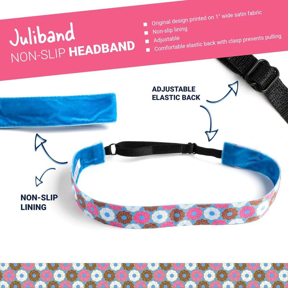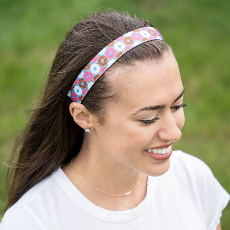 Love donuts as much as running? Our athletic headband is the perfect choice with an all-over donut pattern. Our comfortable Juliband headband is backed with a non-slip velvet to ensure your hair stays put through any activity. The headband is fully adjustable for the best custom fit. This stylish and unique headband makes the perfect accessory to any outfit.