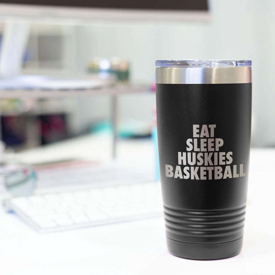 Add a custom team name to our laser engraved “Eat. Sleep. Basketball” travel tumbler, designed for hot and cold drinks, for an ideal basketball gift. The durable tumbler has double-wall vacuum insulation, which ensures hot beverages stay hot, and cold drinks stay cold, for as long as possible, so they can be enjoyed at their ideal temperature, even after some time has passed. This all-season travel mug is perfect for road trips, when outdoors, and commuting – as well as for work and school – and is an ideal gift for a proud basketball player and coach who will love showing off this personalized basketball travel tumbler.