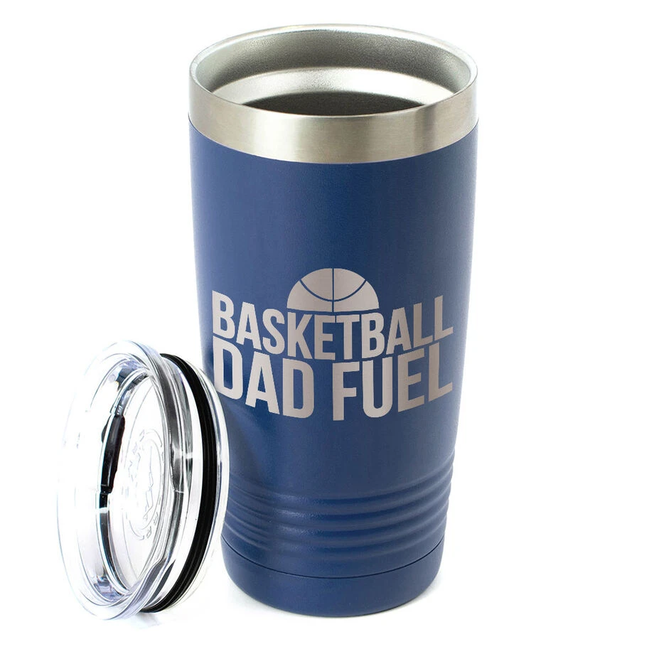 Show your dad how much you appreciate all that he does with this unique basketball dad travel mug, this mug is sure to a favorite for coffee on the go. Our 20 oz. hot/cold insulated tumbler is the perfect choice for coffee – or any beverage – and keeps them near optimal temperatures for as long as possible. Utilizing double-wall vacuum insulation, the tumbler ensures hot drinks stay hot and cold drinks stay cold for as long as possible. Laser engraved with a bold design, this tumbler is great gift for that special someone that is sure to be put to good use almost every day.