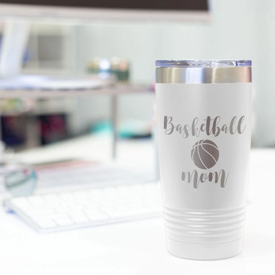 Show your mom how much you appreciate all that she does with this unique basketball mom travel mug, this mug is sure to a favorite for coffee on the go. Our 20 oz. hot/cold insulated tumbler is the perfect choice for coffee – or any beverage – and keeps them near optimal temperatures for as long as possible. Utilizing double-wall vacuum insulation, the tumbler ensures hot drinks stay hot and cold drinks stay cold for as long as possible. Laser engraved with a bold design, this tumbler is great gift for that special someone that is sure to be put to good use almost every day.