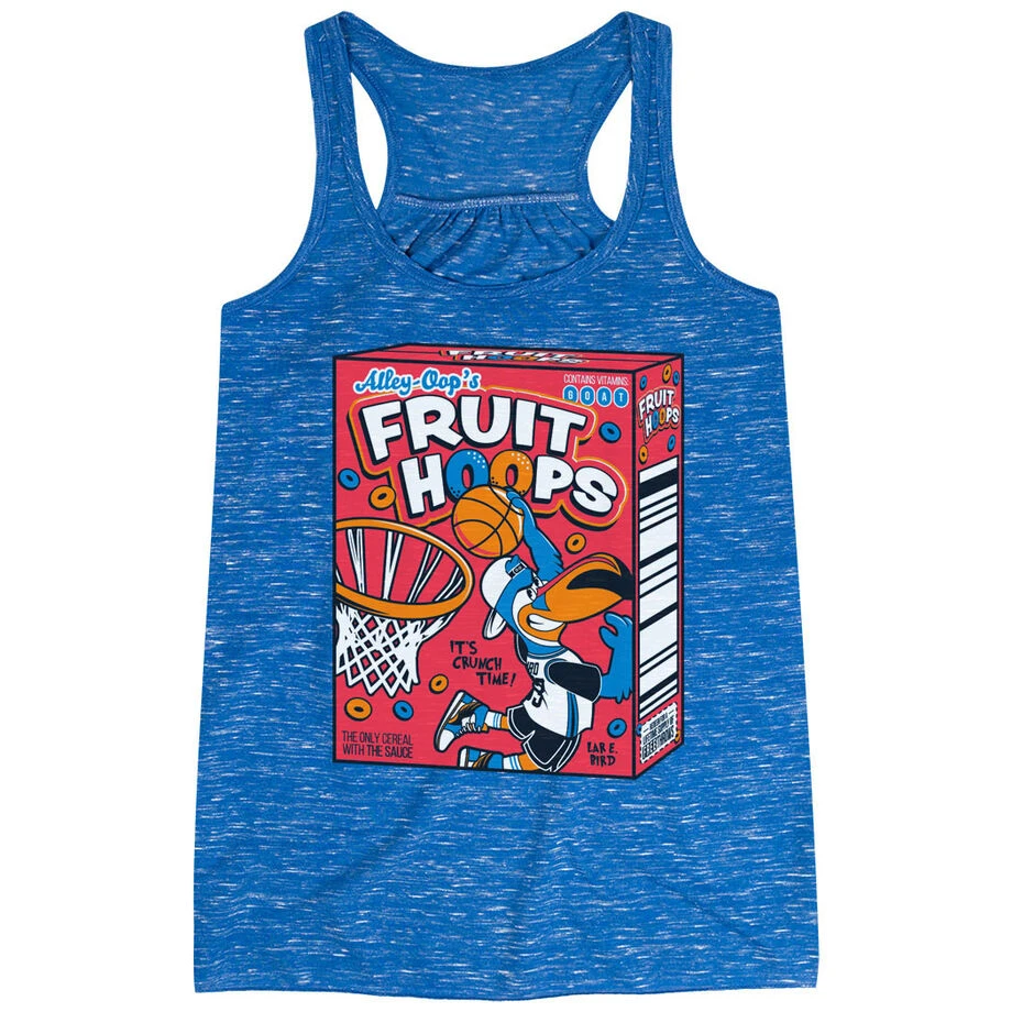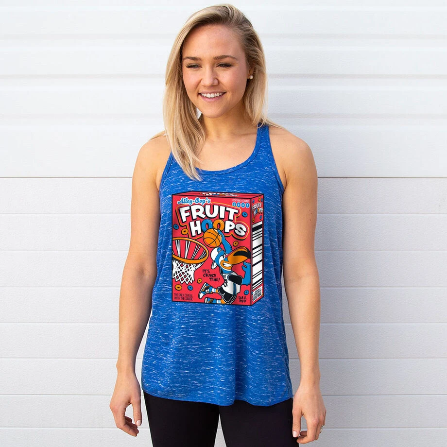 With its cereal-inspired basketball motto and loud and bright cereal-inspired design, this flowy tank will be a win whenever you wear it. With a cinched racerback and a high-low cut, this makes the perfect look no matter where you’re headed and a great way to let the world know you live that basketball lifestyle. The versatile loose-fitting tank top is lightweight, super soft, and looks great when paired with any choice of bottoms.