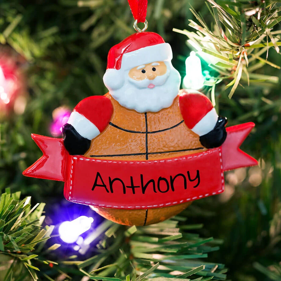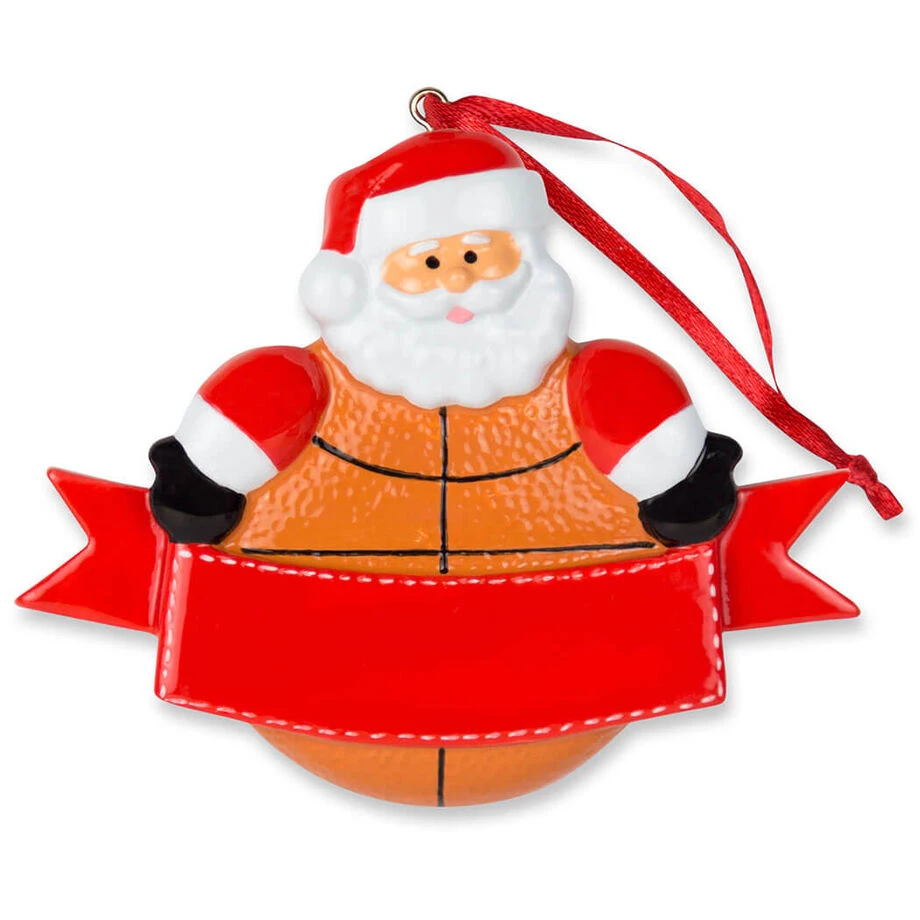 Our brightly colored basketball Santa resin ornament will put a smile on any fan’s face. Featuring a dimpled orange body, the glossy surface catches the light when hanging on a Christmas tree. Across his belly is a space to personalize it with a name, number or year using a fine-point permanent marker. Perfect as a stocking stuffer or under the tree, this basketball Santa resin ornament is one that your favorite player is sure to treasure.