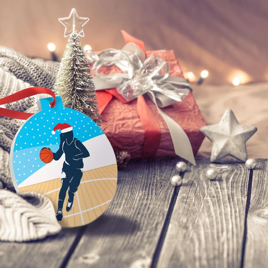 This hand-crafted ceramic basketball ornament makes for a great gift, sure to find a spot on the Christmas tree year after year and cherished by many. This 3.5″ ceramic ornament features double-sided artwork, packaged in a gift box, and includes a satin ribbon for easy hanging. Make this ornament an extra special gift by personalizing it with a permanent marker.