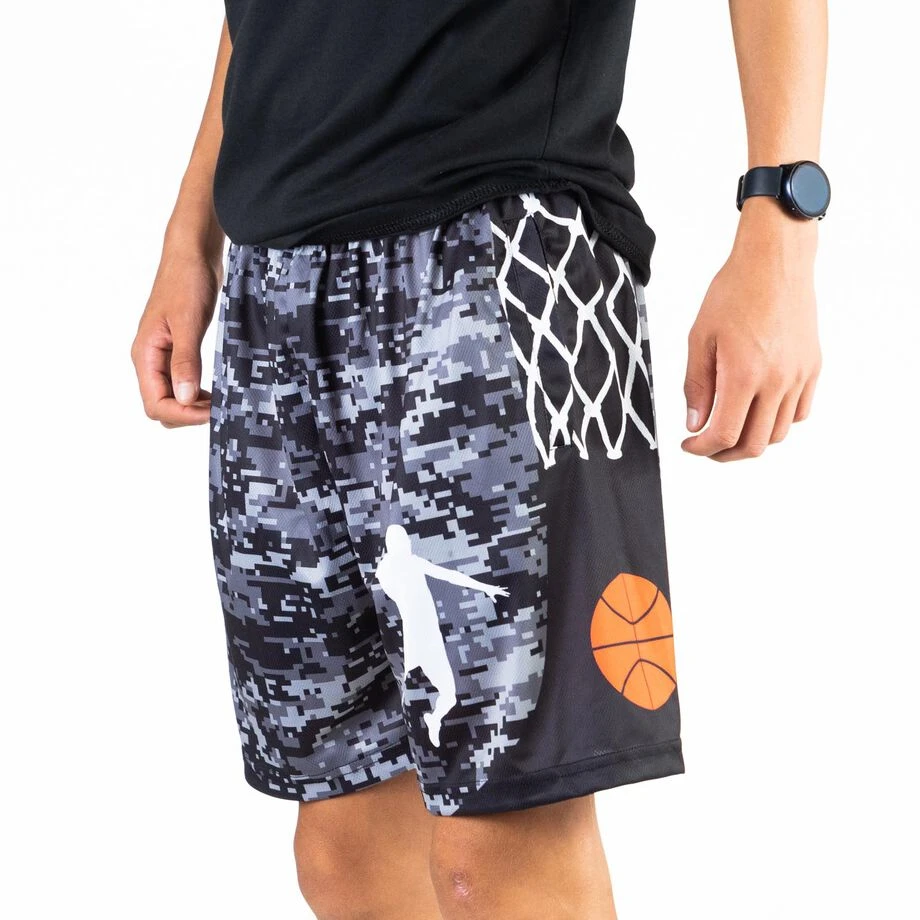Show off your basketball pride in style with a pair of our digital camo basketball shorts, these shorts are sure to be a favorite to wear on and off the court. Our basketball shorts are ideal for year round wear, whether you are going to practice, game, lounging or daily wear. These lightweight incredibly comfortable shorts moisture-wicking shorts are also equipped with an elastic adjustable waistband and side pockets.