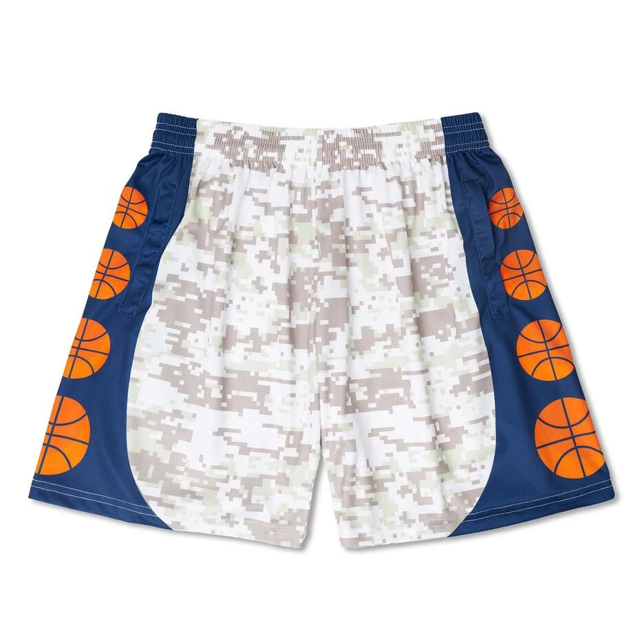 Rep your love of basketball in style with a pair of our one-of-a-kind digital camo basketball shorts. These shorts are sure to be a favorite with any player to and from the court. Our athletic shorts are ideal for year round wear – whether you are going to a game, practice, lounging or just daily wear. These lightweight, incredibly comfortable moisture-wicking shorts are also equipped with an elastic adjustable waistband and side pockets