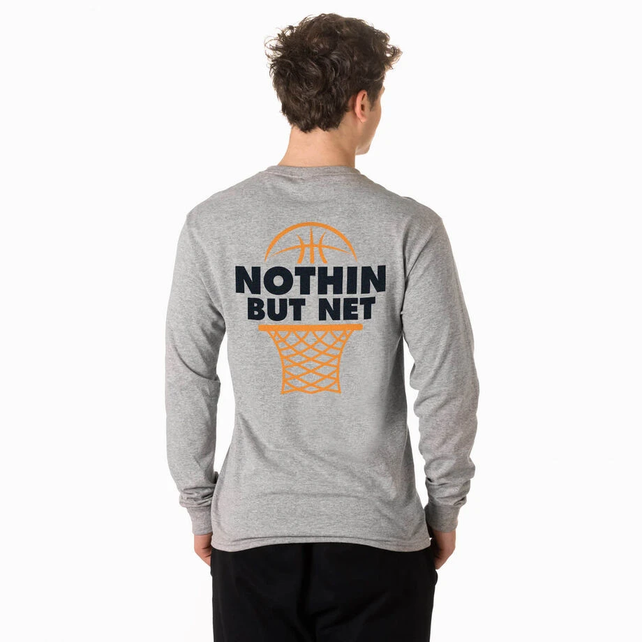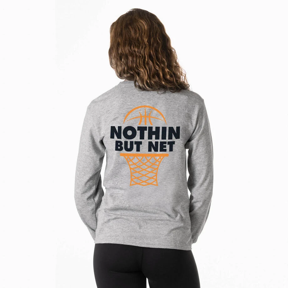 Show off your love for basketball with our exclusive Back Design Long Sleeve Shirts. These stylish shirts feature our exclusive “Nothin But Net” design on the back, allowing you to express your passion for the sport in a fashionable way. Meticulously crafted with sharp attention to detail, each shirt boasts a basketball design that is sure to turn heads. Whether you’re a dedicated fan, an avid player, or simply admire the spirit of basketball, this shirt is the perfect choice to make a bold statement wherever you go. Available in a variety of colors and unique designs, these shirts are a must-have for any athlete’s wardrobe.