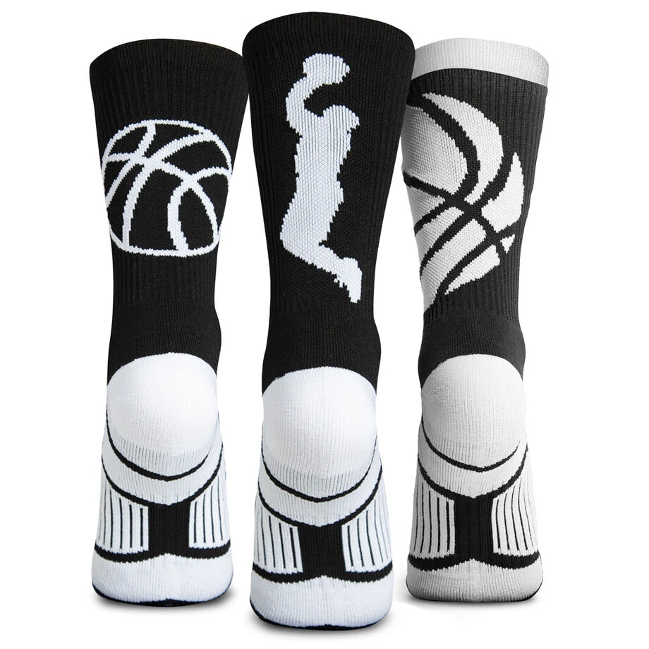 This set of mid-calf basketball socks comes in a variety of colors and basketball designs which make the perfect socks wear with a variety of outfits. These basketball crew socks don’t only complete an outfit but they are also built for all-day comfort for any activity. Basketball players won’t have to worry about their feet while wearing these socks, made with COOLMAX® material their feet are sure to stay dry and comfortable. Along with being moisture-wicking, these crew basketball socks have a cushioned footbed and supportive arch band to help absorb the impact of physical activities. These mid-calf basketball sock sets also make for a great gift for any occasion.