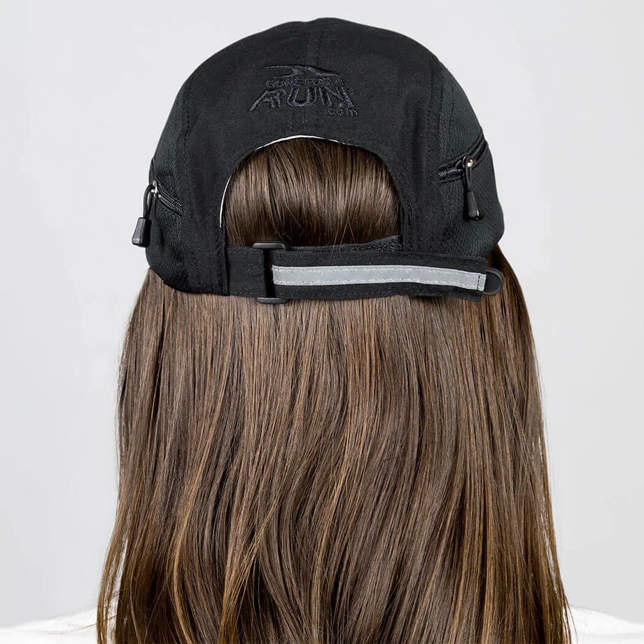 The CoolRun pocket hat for runners is super lightweight and moisture-wicking. This running hat features ventilated mesh panels on both sides as well as reflective safety piping on the brim for ultimate comfort and extra safety while out on a run. Our comfortable CoolRun pocket hat conveniently offers two zipper pockets on each side to hold your running and everyday essentials such as: keys, money, energy gels, and ID.