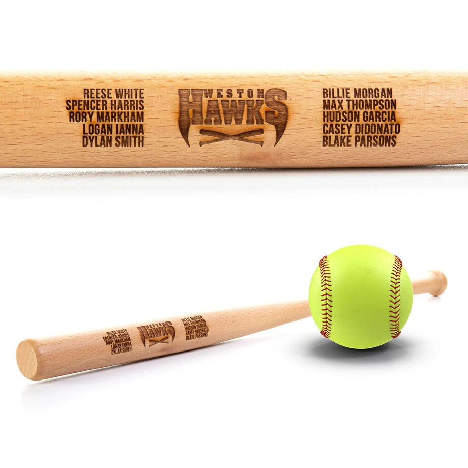 Whether it is an end of season gift or for a special moment in the season give the gift of an engraved mini softbball bat to always cherish that moment. This 18″ x 1.25″ wooden mini baseball bat is laser engraved for a long lasting design. This is a great baseball bat to remember a special moment or even for years to come. This bat also makes a great gift for any occasion.