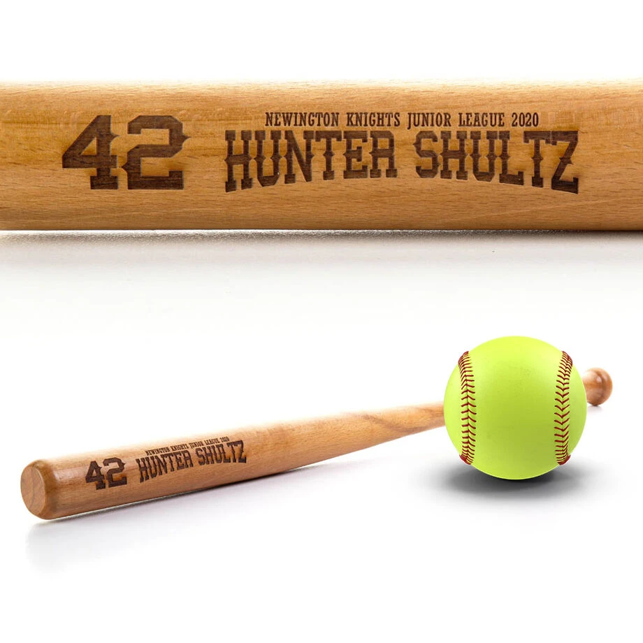 Whether it is an end of season gift or for a special moment in the season give the gift of an engraved mini softbball bat to always cherish that moment. This 18″ x 1.25″ wooden mini baseball bat is laser engraved for a long lasting design. This is a great baseball bat to remember a special moment or even for years to come. This bat also makes a great gift for any occasion.