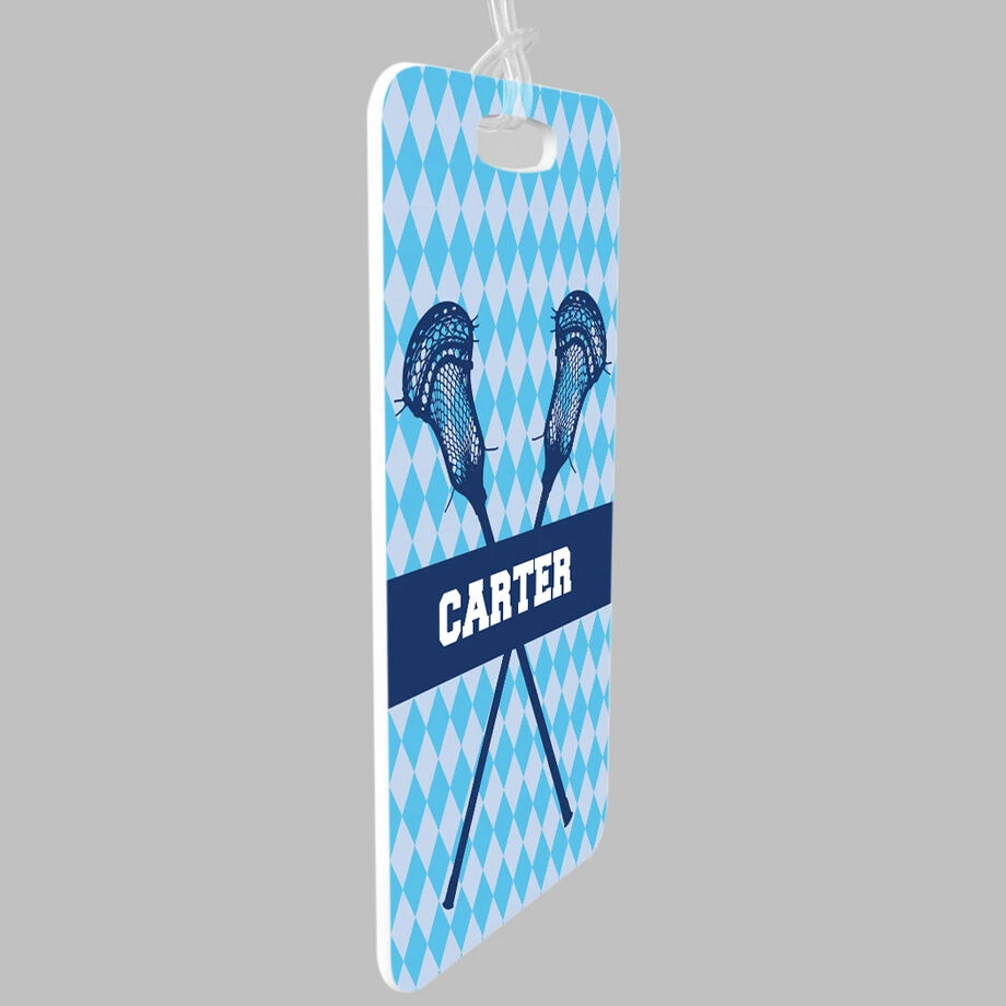 Our hard plastic guys lacrosse bag tag is custom printed with a name for a bold look and the back is easy to personalize with identifying information for a great gift for the team or an individual player. The tag comes in three different sizes to accommodate different styles of bags and is as simple to attach to a gear bag as it is to a backpack or a piece of luggage using the flexible plastic loop. A great way to easily and quickly find a bag in a locker room, at the field, or when traveling, this is a unique, useful guys lacrosse gift with many uses – and one that is sure to be appreciated.