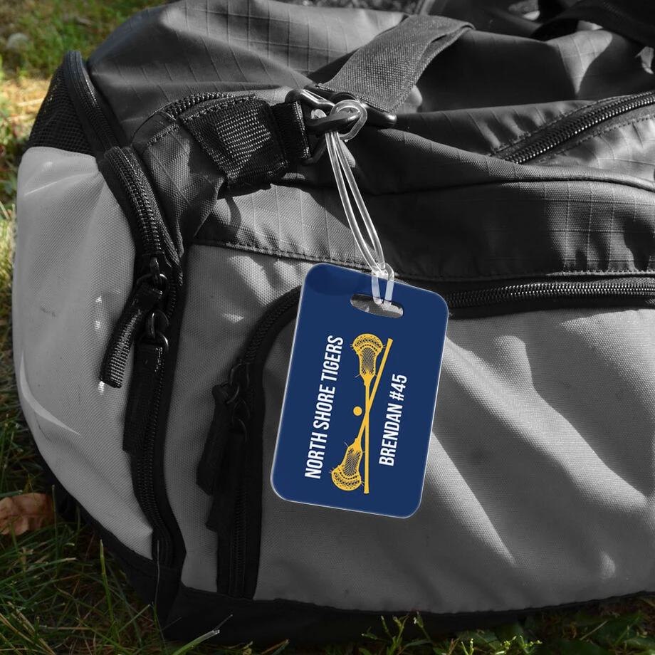 Our unique hard plastic guys lacrosse bag tag is custom printed with two lines of your own text – which can include anything from a team or player name to a championship status or motivational message and the back can be personalized with contact information. Sure to stand out when traveling, as well as in a locker room, on the field, or anywhere a player goes and brings a bag along. Simple to secure on any style bag using the flexible plastic loop, it makes it easier and faster to identify a bag than one without the eye-catching tag. Choose from a variety of colors and three sizes for the perfect match to any bag of choice. An ideal guys lacrosse gift for any occasion, both for an individual player or the whole team – and one that is certain to be put to good use.