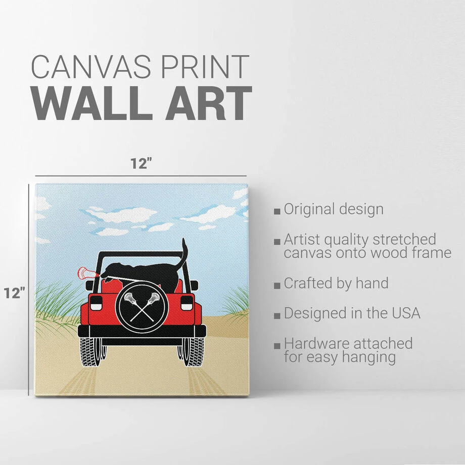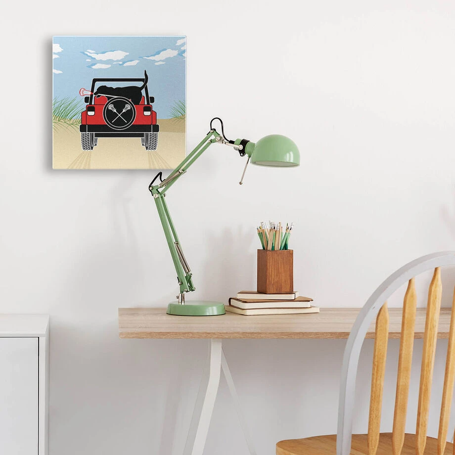 Add a lacrosse accent to any room you decorate with our one-of-a-kind Chillax’n Cruiser canvas. This 12″ X 12″ wall art features an exclusive design and artist-grade wrapped edges to complete the look. Bring your passion for the game to life with the texture and depth of this unique stretched canvas art. Perfect to create a sports themed room and a thoughtful gift for any lacrosse player or fan. Hardware included for easy hanging.