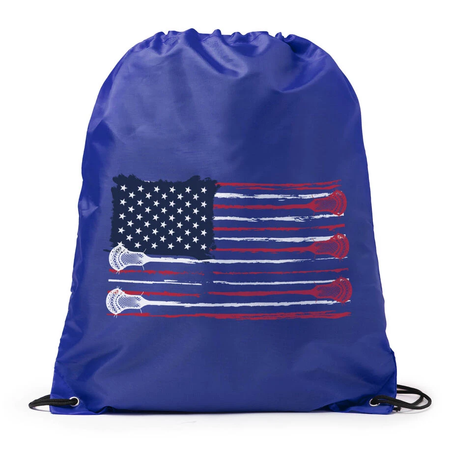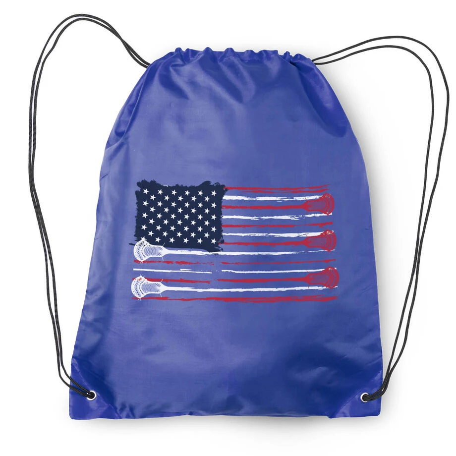 Show off your patriotic pride with one of our exclusive patriotic lacrosse designs on one of our drawstring bags, perfect for everyday use. Our 14″ X 18″ tough nylon drawstring backpacks are perfect to carry everyday needs to those extra lacrosse accessories that you might need for a practice or game. With the fun bright colors these bags also make great gifts for that special lacrosse player or even end of the year team gifts.