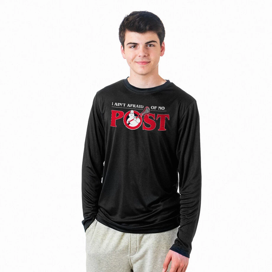 Gear up for a practice/game on or off the field or any activity with our long sleeve tech tee with a unique lacrosse design, this is the perfect tee to show off that lax pride. This moisture-wicking long sleeve athletic tech tee is a great way to keep you dry during all activities or daily wear. This shirt also makes for a great gift for any occasion.