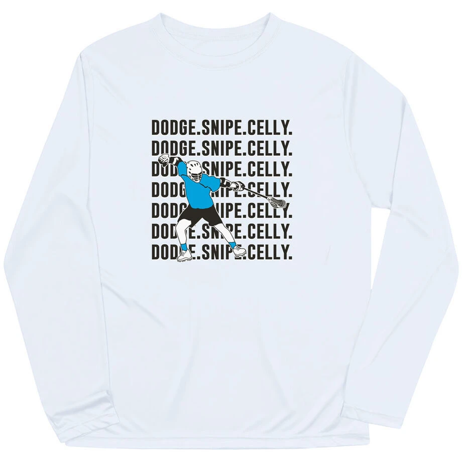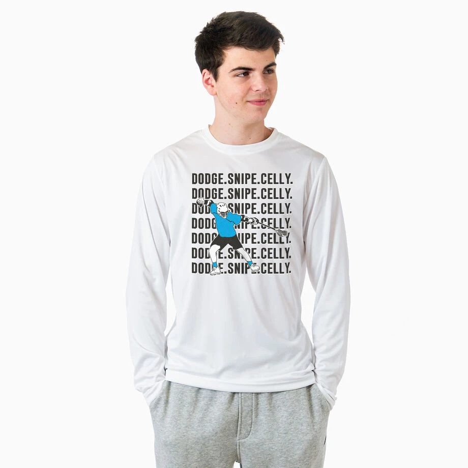 Gear up for a practice/game on or off the field, or any activity with our long sleeve tech tee with a unique guys lacrosse design, this is the perfect tee to show off that Lax pride. This moisture-wicking long sleeve athletic tech tee is a great way to keep you dry during all activities or daily wear. With UV protection it will be sure to protect your skin as well. This shirt also makes for a great gift for any occasion.