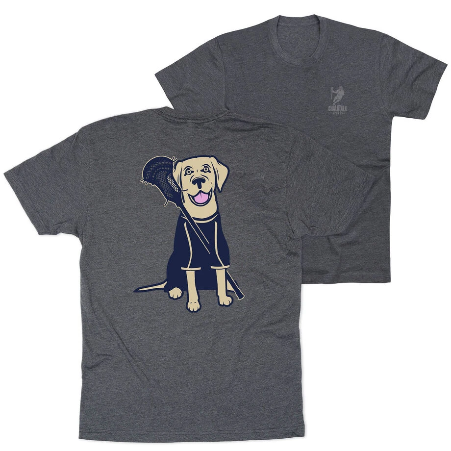 Wear your favorite lacrosse design on the BACK of your shirt with a smaller design on the front. Show off your lacrosse pride with this bold and stylized short sleeve t-shirt. It’s a great lacrosse gift idea for any player who just can’t get enough of that ultimate sport lifestyle. It makes for the perfect end of season gift or any special occasion. Coming in a variety of colors and unique designs these are a great wardrobe collection.
