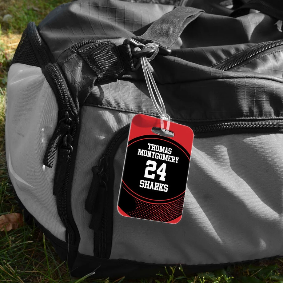 Fun and practical, our hockey bag tag is personalized with a player name, number and team name on an oversized puck design. Great for everyday use on a backpack or sport bag, it is made from sturdy plastic and includes a loop that is flexible to make it quick and easy to transfer the tag from one bag to another. Available in three sizes and popular color combinations, this custom bag tag offers reverse printing to include contact information necessary when used as a luggage tag. This hockey bag tag is the perfect team gift to celebrate the end of the season, or for your favorite player for any occasion.