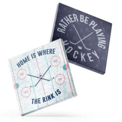 Add a hockey accent to any room you decorate with our one-of-a-kind Rather Be Playing Hockey 2-piece canvas set. Each wall art measures 12″ X 12″ and features an exclusive design and artist-grade wrapped edges to complete the look. Bring your passion for the game to life with the texture and depth of this unique stretched canvas prints. Perfect to create a sports themed room and a thoughtful gift for any hockey player or fan. Hardware included for easy hanging.