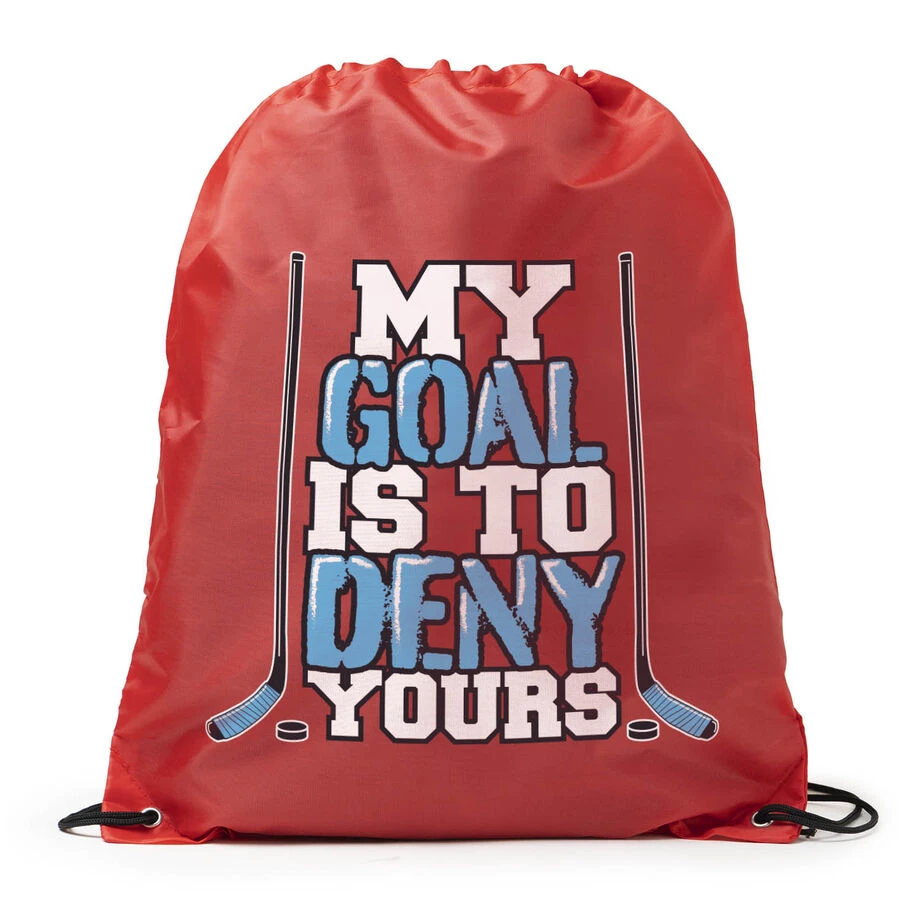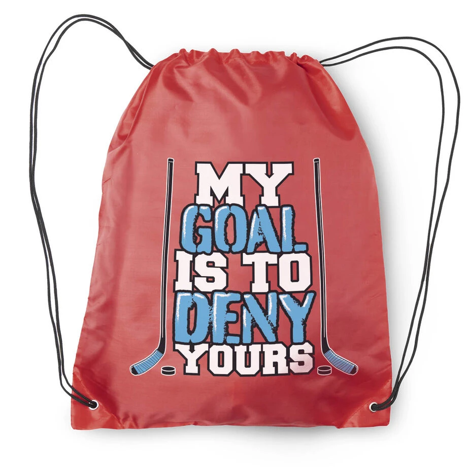 Hockey Drawstring Backpack My Goal Is To Deny Yours (Blue/Black)