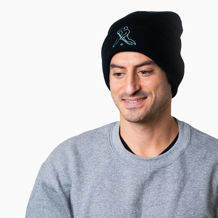 Keep your head and ears warm on the coldest days in our “Hockey Player” embroidered beanie for hockey players and fans. This comfortable and cozy beanie features a fold-over cuff with an exclusive embroidered hockey design. Made from 100% acrylic yarn, the non-itch beanie is soft and warm. One size fits most. Wear this one-of-a-kind beanie to your games or while training during colder months. Perfect gift for any hockey player for any occasion.