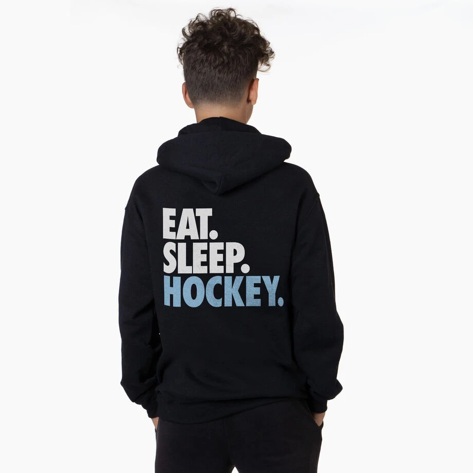 Wear your favorite hockey design on the BACK of your sweatshirt with a smaller design on the front. Ideal for hockey players, our pullover hooded sweatshirt is warm and comfortable, with our original artwork printed on the front and back. This sweatshirt is not only stylish and fun, it’s also designed from a blend of cotton and moisture-wicking polyester, making it the ideal hoodie for hockey players both on and off the ice. The double-lined hood can be pulled up for protection from the elements such as wind and rain, and the front pouch pocket is the perfect size for warming cold hands. A great gift for an individual player or the whole team at the end of the season, in addition to any special occasion. Coming in a variety of colors and unique designs these are a great wardrobe collection.