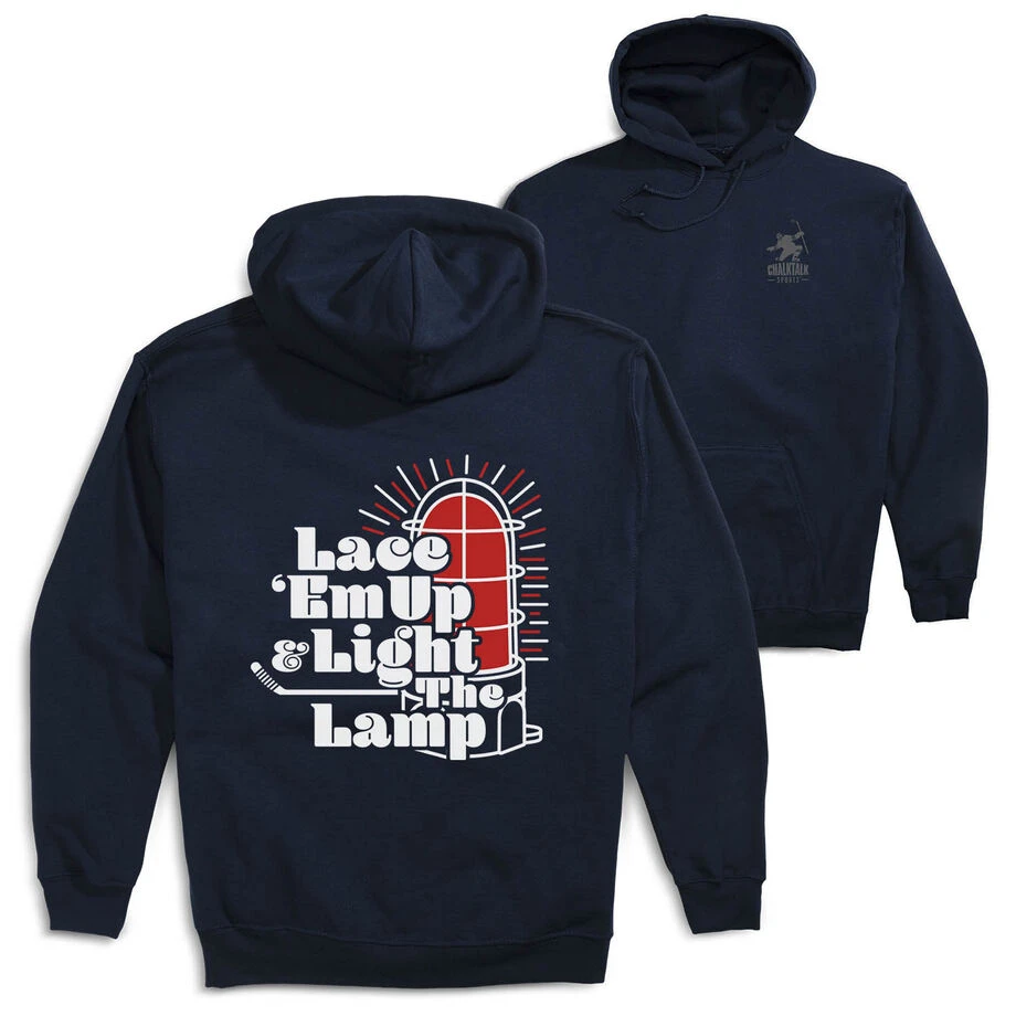 Hockey Hooded Sweatshirt – Lace ‘Em Up And Light The Lamp (Back Design)
