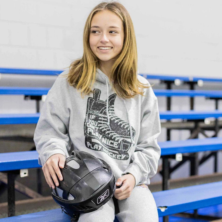 Show off your hockey pride in our hooded sweatshirt with our bold one-of-a-kind hockey design, any player would love this as a gift for the holidays. This sweatshirt is not only stylish and fun, it’s also designed from a blend of cotton and moisture-wicking polyester, making it the ideal hoodie for players both on and off the field. The double-lined hood can be pulled up for protection from the elements such as wind and rain, and the front pouch pocket is the perfect size for warming cold hands. A great gift for an individual player/team at the end of the season, or for any special occasion.