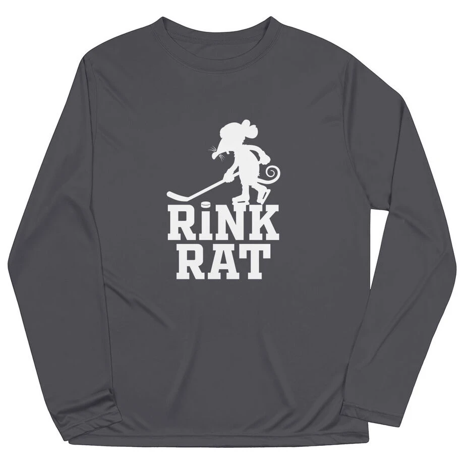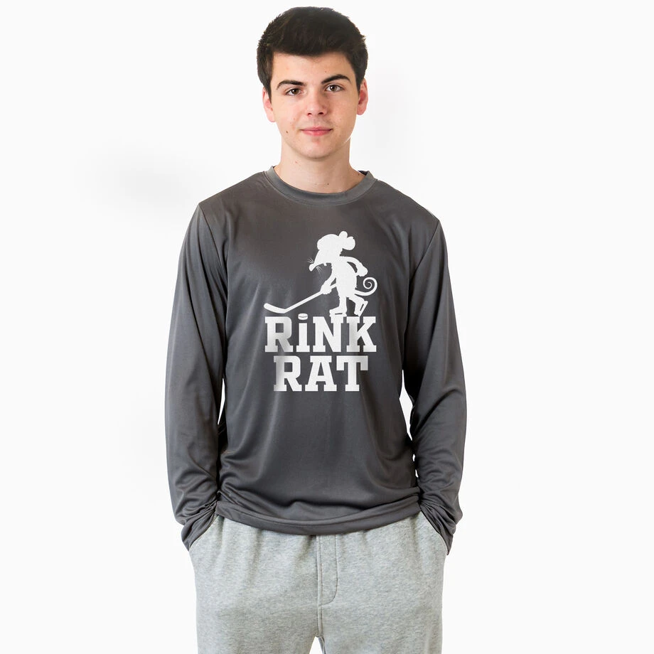 Gear up for the ice or any activity with our long sleeve tech tee with a hockey rink rat design, this is the perfect tee to show off that hockey pride. This moisture-wicking long sleeve athletic tech tee is great way to keep you dry during all activities or daily wear. With UV protection it will be sure to protect your skin as well. This shirt also makes for a great gift for any occasion.