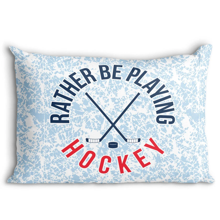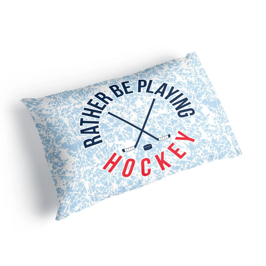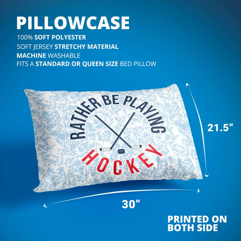 The perfect hockey pillowcase for an amazing player who lives the game; this is an ideal gift for the beginning or end of the season for a player or the whole team. The soft pillowcase is made from soft polyester and fits most standard pillows. Surprise any hockey player with this unique and thoughtful Rather Be Playing Hockey pillowcase.