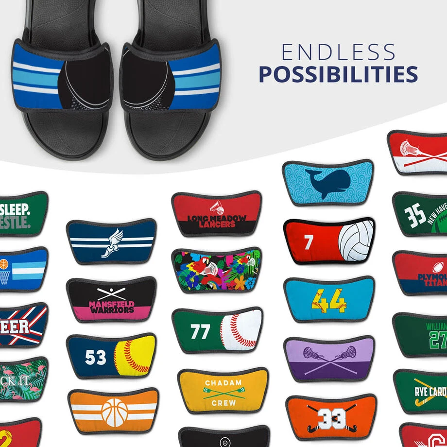 Show off that ice hockey pride everywhere you go with a pair of hockey Repwell® slide sandals and choose from the many interchangeable design straps. With the removable design straps you can mix and match different straps and represent different sports and designs all on one pair of sandals. With the endless possibilities for designs these Repwell® slide sandals and straps make for a great gift not just for a player but for the whole team.