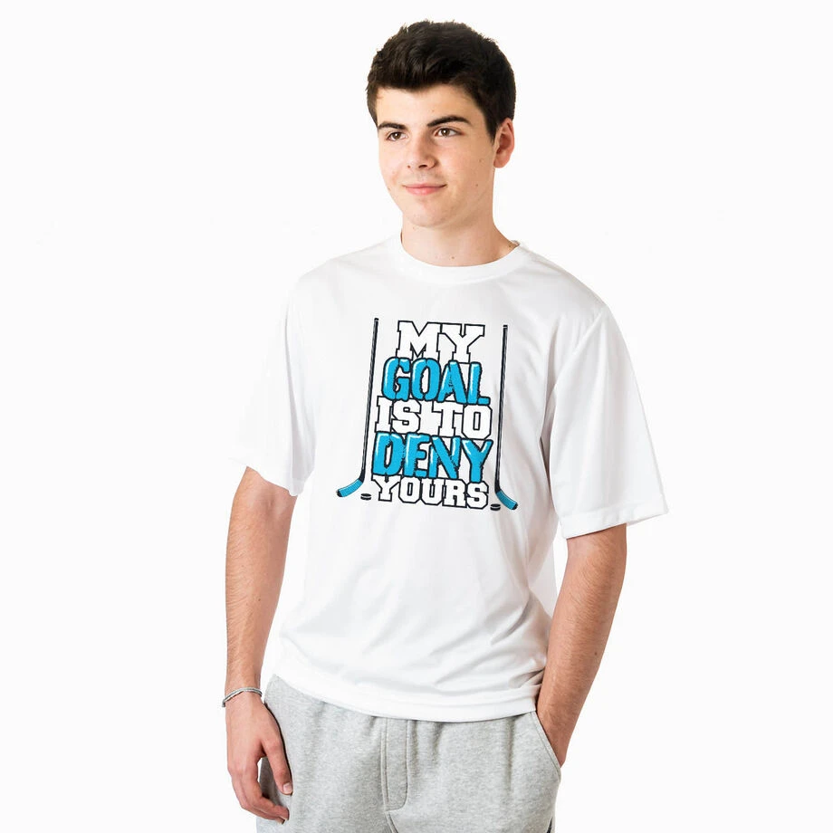 Hockey Short Sleeve Performance Tee – My Goal Is To Deny Yours Hockey (Blue/Black)