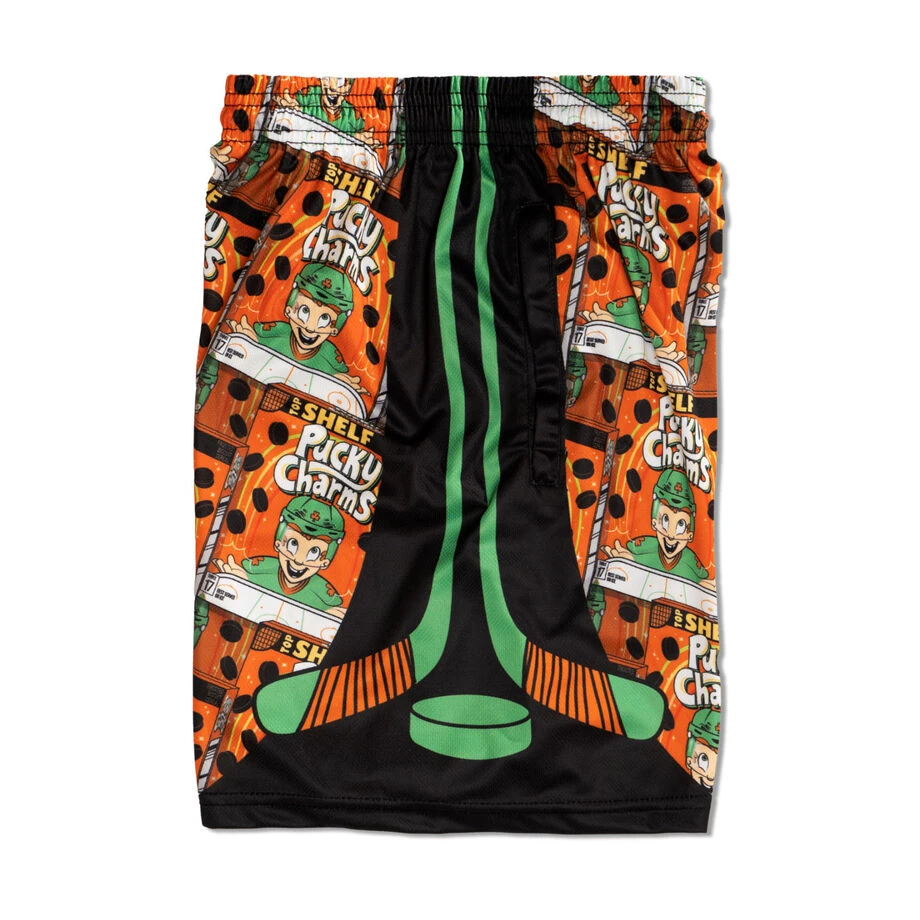 Rep your love of ice hockey in style this St. Patricks’s Day with a pair of our one-of-a-kind Pucky Charms shorts. These shorts are sure to be a favorite with any player to and from the rink. Our athletic shorts are ideal for year round wear, whether you are going to a game, practice, lounging or just daily wear. These lightweight, incredibly comfortable moisture-wicking shorts are also equipped with an elastic adjustable waistband and side pockets.
