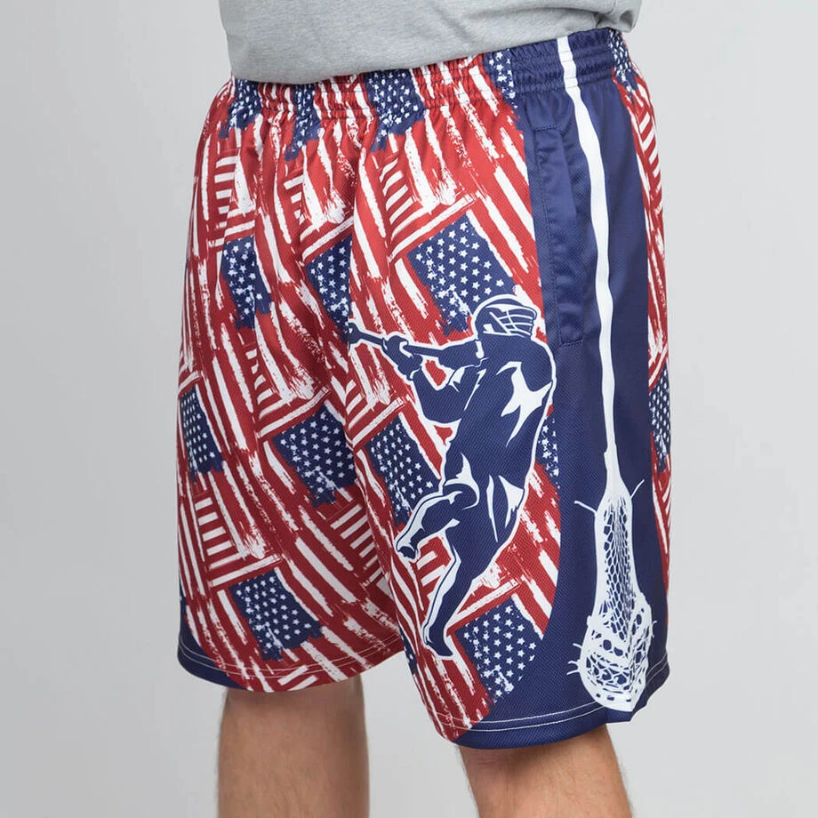 Show off your lacrosse pride in style with a pair of our USA lacrosse shorts, these shorts are sure to be a favorite with any player on and off the field. Our lacrosse shorts are ideal for year round wear, whether you are going to practice, game, lounging or daily wear. These lightweight incredibly comfortable shorts moisture-wicking shorts are also equipped with an elastic adjustable waistband and side pockets.