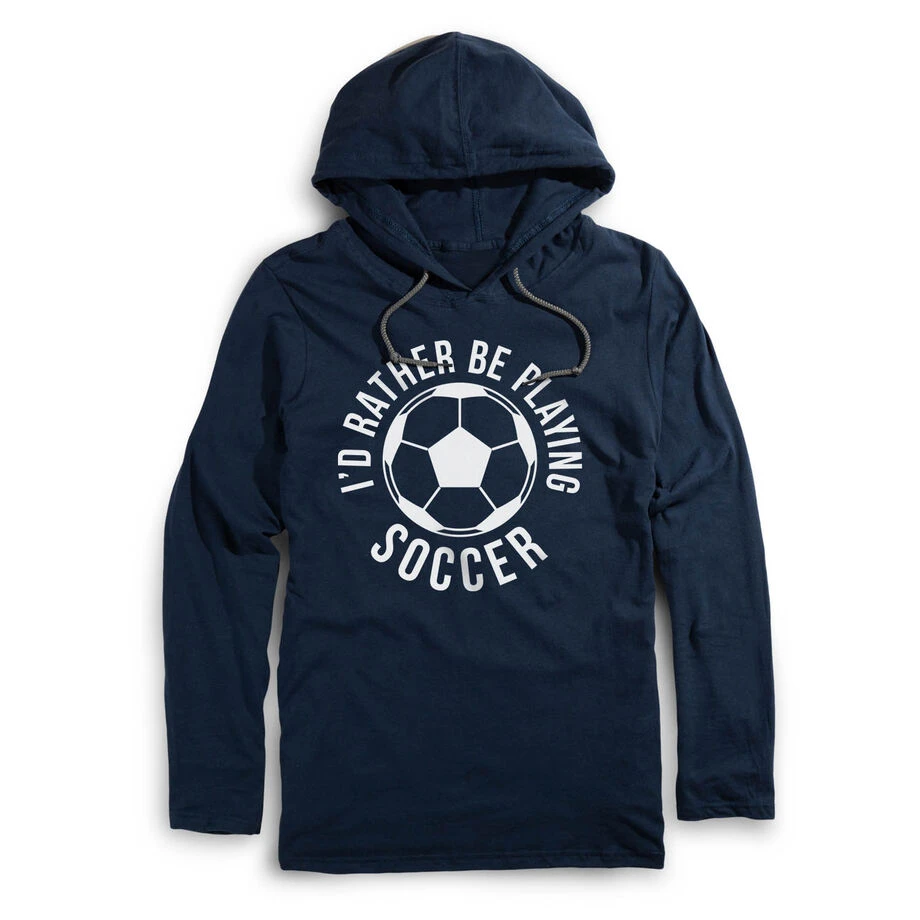 Show off your soccer pride in our lightweight hoodie featuring a one-of-a-kind bold design inspired by soccer. This moisture-wicking pullover is made from soft, lightweight, and heathered material. The versatile loose-fitting hoodie looks great when paired with any choice of bottoms from jeans to shorts. This stylish lightweight hoodie is perfect for everyday wear and an ideal soccer gift for any occasion.