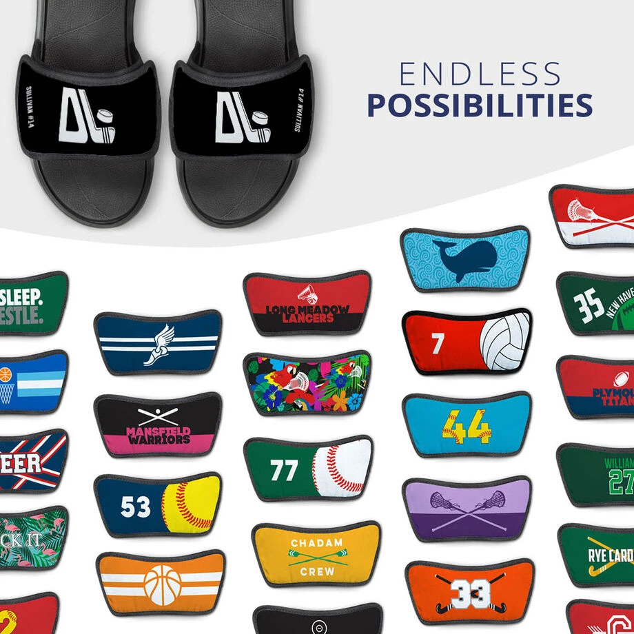 Show off that sport pride and style everywhere you go with a pair of Repwell® slide sandals and the interchangeable design straps. With the removable design straps you can mix and match different straps and represent different sports and designs all on one pair of sandals. With the endless possibilities for designs these Repwell® slide sandals and straps make for a great gift not just for a player but for the whole team.