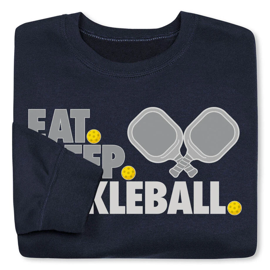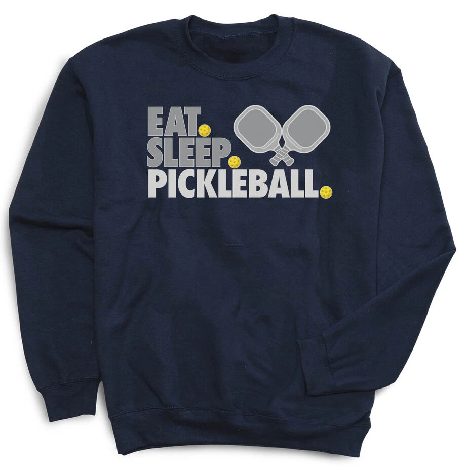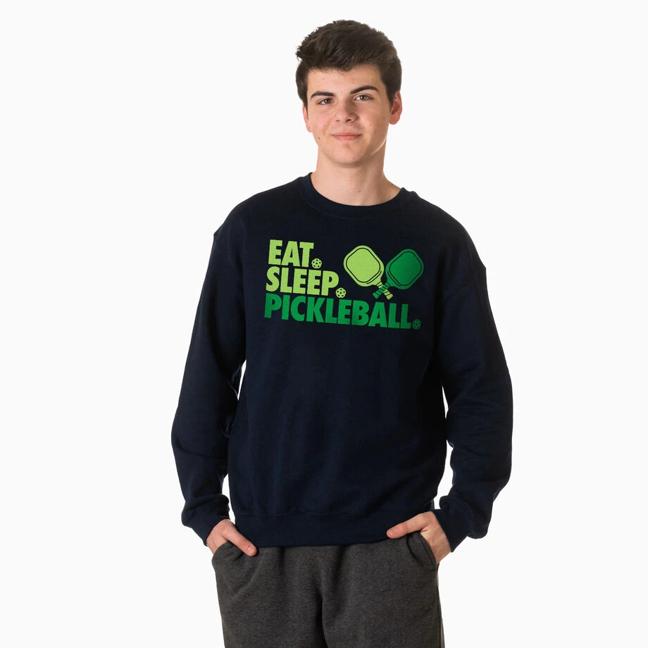 Show off your pickleball pride in our crewneck sweatshirt with our bold one-of-a-kind eat sleep pickleball design, any player would love this as a gift for any occasion. Our crewneck sweatshirts are made from a blend of cotton and polyester. These super-soft sweatshirts are also the perfect weight to keep you warm on the cooler days.