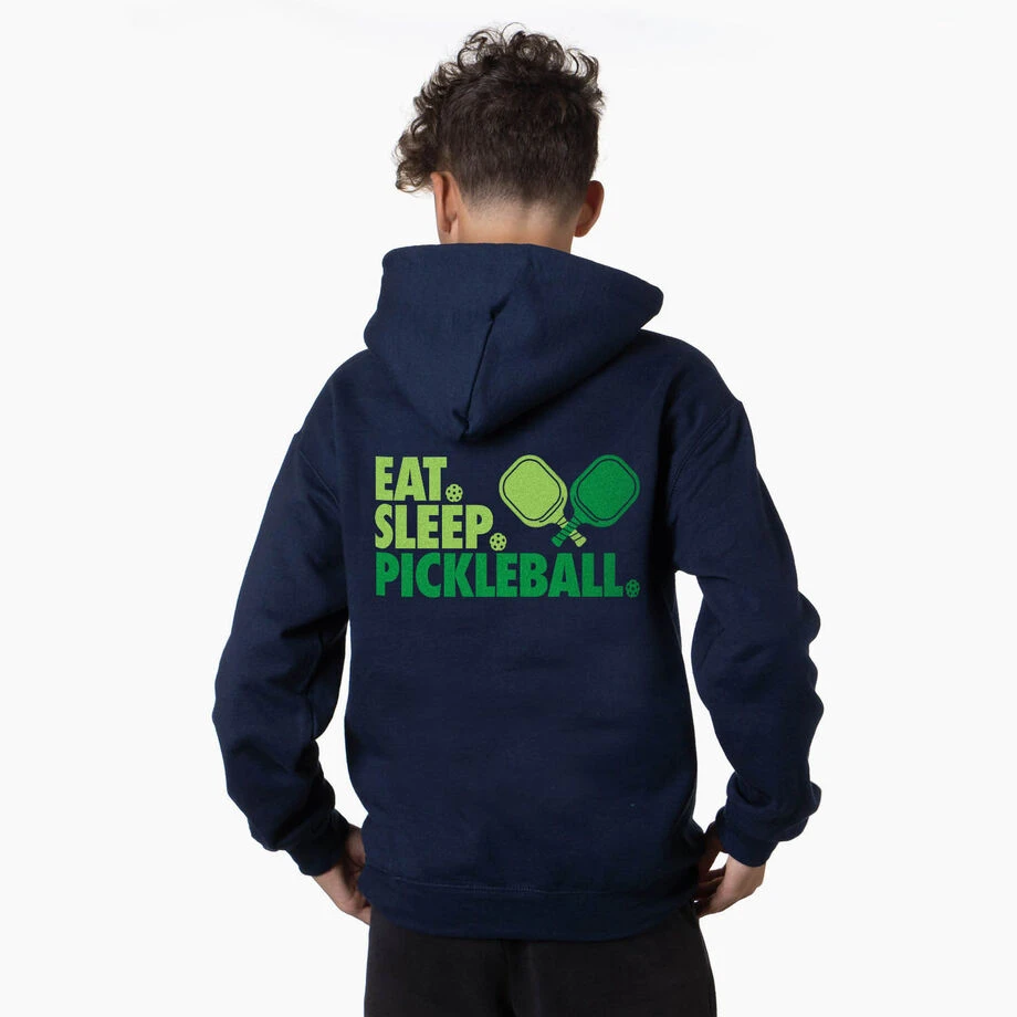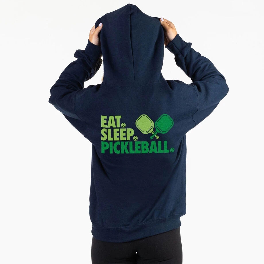 Wear this pickleball design on the BACK of your sweatshirt with a smaller pickleball design on the front. Ideal for athletes, our pullover hooded sweatshirt is warm, comfortable and features our original artwork printed on the front and back. This sweatshirt is not only stylish and fun, it’s also designed from a blend of cotton and moisture-wicking polyester, making it the ideal hoodie for athletes both on and off the field. The double-lined hood can be pulled up for protection from the elements such as wind and rain, and the front pouch pocket is the perfect size for warming cold hands. A great gift for an individual player or the whole team at the end of the season. Coming in a variety of colors and unique designs these are a great wardrobe collection.