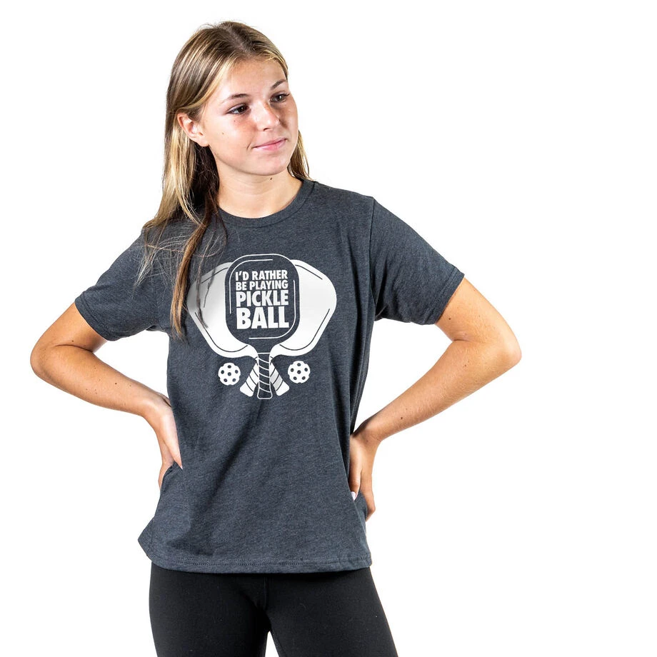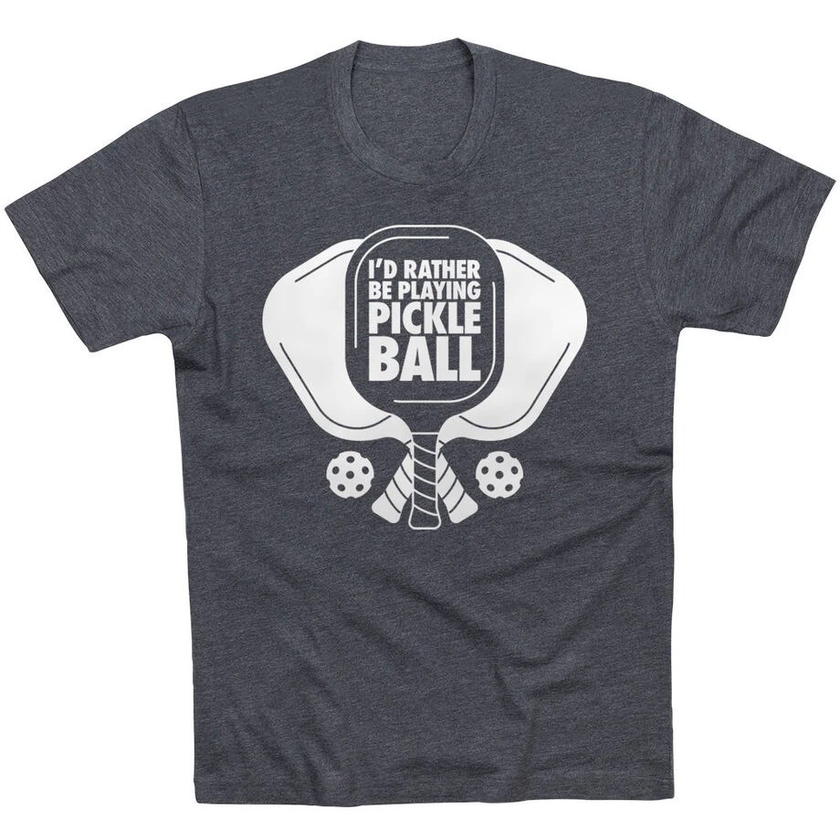 Show off your pickleball pride with this bold and stylized short sleeve I’d rather be playing pickleball t-shirt. It’s a great gift idea for any athlete who just can’t get enough of that pickleball lifestyle. It makes for the perfect end of season gift or any special occasion. Coming in a variety of colors and designs these are a great wardrobe collection.