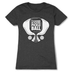 Show off your pickleball pride in our fitted tee with our bold one-of-a-kind I’d rather be playing pickleball design, any pickleball fan would love this as a gift for any occasion. The slim women’s fit t-shirt pairs well with anything from athletic wear and leggings to jeans and shorts.