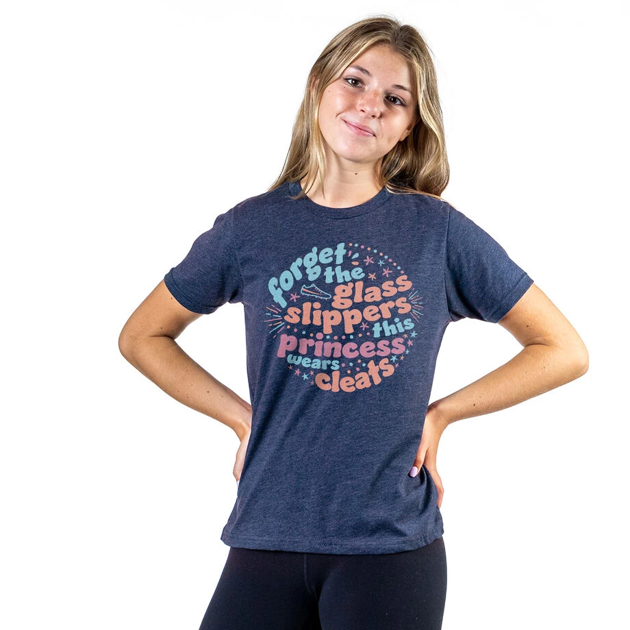 With a relaxed fit, our short sleeve sports T-Shirt with a fun Forget The Glass Slippers design is sure to be a hit for any occasion with all players. The soft and comfortable T-Shirt looks great with any bottoms, including leggings, shorts, and jeans, and is a fun choice to get in the mood for the holidays, and a perfect choice on or off the court. The unique design is certain to be a favorite, and one players will love showing off.