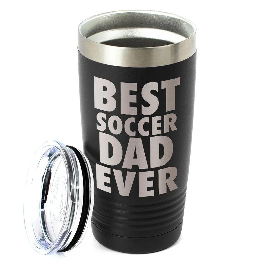 Soccer dads will love this engraved stainless steel “best soccer dad ever” travel tumbler, designed for both hot and cold beverages and a versatile and unique soccer dad gift. The 20 oz. tumbler is a great take-along to games, on road trips, or while commuting to work or school, as it has a double-wall vacuum insulated interior that is specifically made to ensure that hot drinks stay hot and cold drinks stay cold for as long as possible. This all-season travel tumbler is an ideal soccer dad gift for Father’s Day, other holidays, birthdays, or as a way to say “thanks,” at the end of the season.