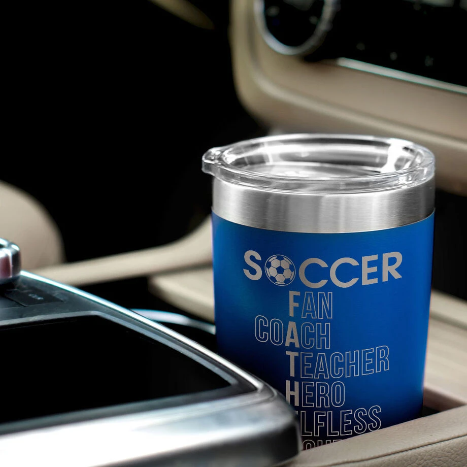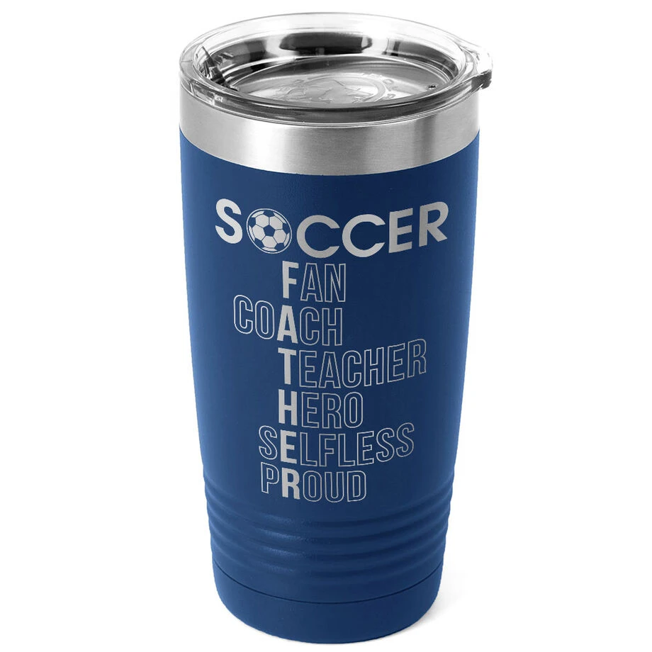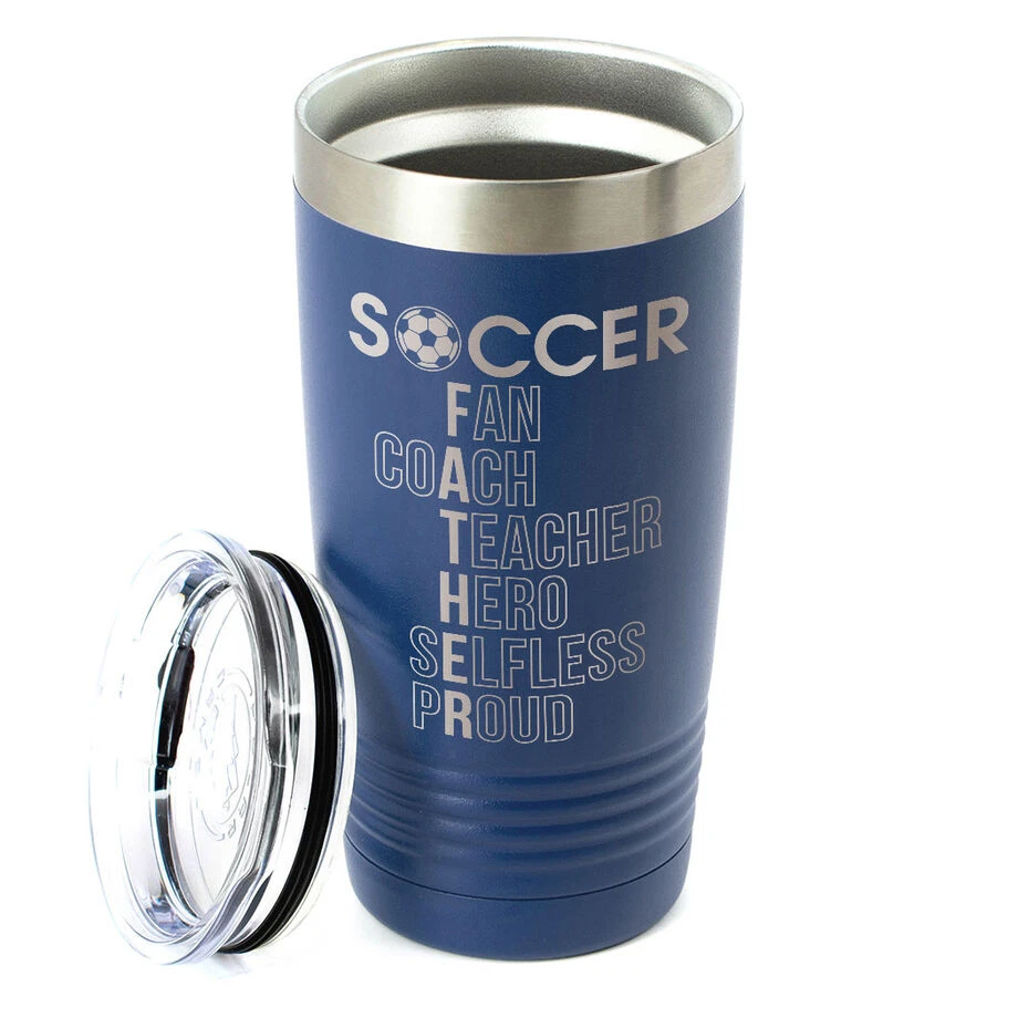 Thank your dad with exclusive soccer engraved stainless steel travel tumbler ideal for hot and cold drinks and a great gift he’ll proudly show off. The 20 oz. tumbler uses double-wall vacuum insulation to ensure hot drinks stay hot and cold drinks stay cold for an extended period of time. Dad will love the durable and stylish travel tumbler that’s a great gift for Father’s Day and other holidays, as well as to say thanks for all his time and support at the end of the season.