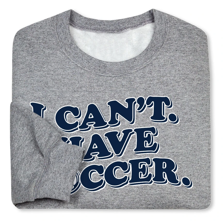 With its bold soccer design, this I Can’t. I Have Soccer. sweatshirt is a guaranteed win. Not only are they stylish and fun, our crewneck sweatshirts are made from a blend of cotton and polyester. These super-soft sweatshirts are also the perfect weight to keep you warm on the cooler days. Any soccer player or fan would love this as a gift for any occasion. If you want to add a touch of personalization to our fun designs, you can add your team or favorite number to the back.