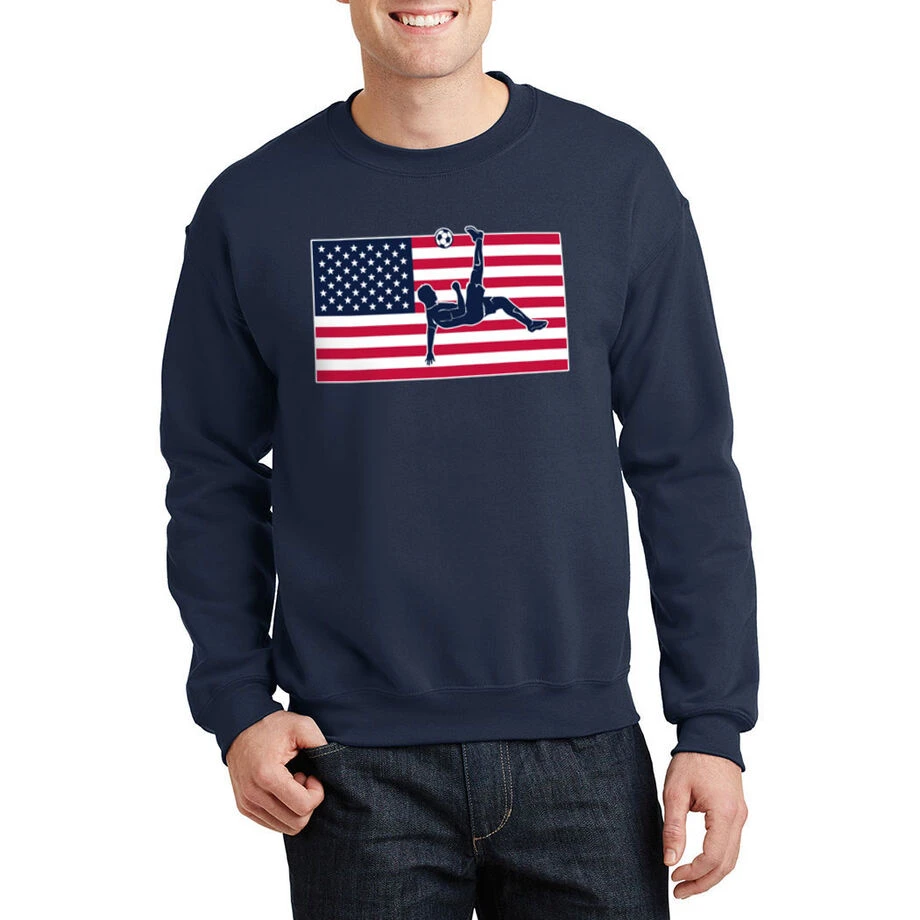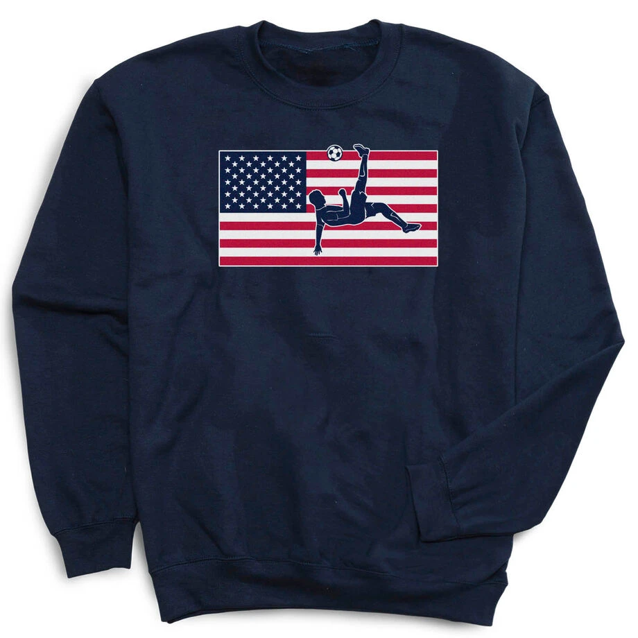 There is no better way to show off your USA pride and love for the sport than in our patriotic soccer design, perfect for the 4th of July. Not only is it stylish and fun, our crewneck sweatshirts are made from a blend of cotton and polyester. These super-soft sweatshirts are also the perfect weight to keep you warm on the cooler days. Any player or fan would love this as a gift for any occasion.