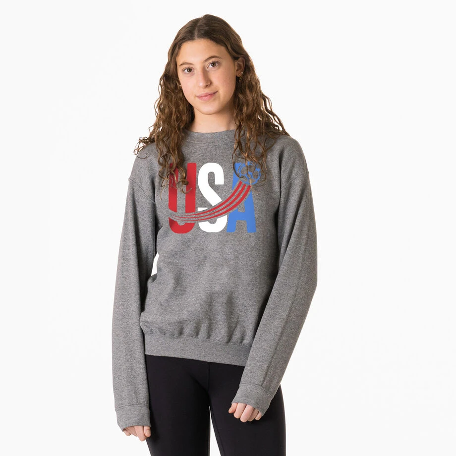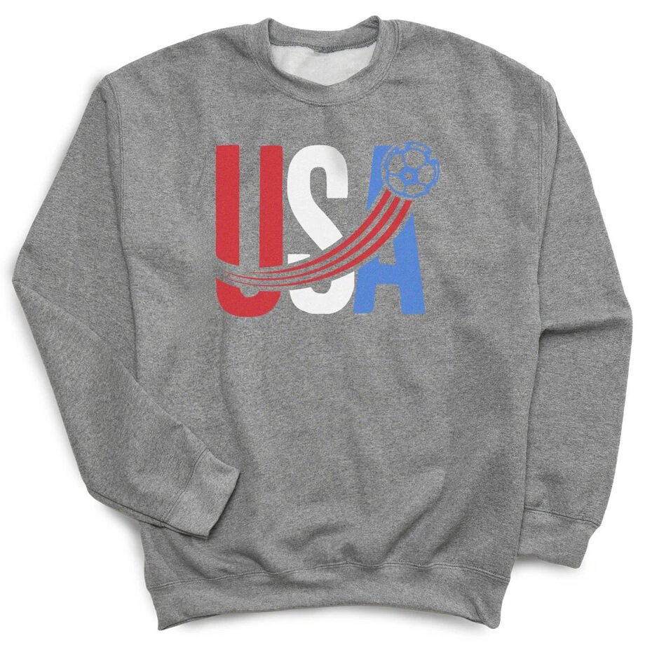 Rep that red, white and blue pride in our USA Patriotic soccer design, perfect for the 4th of July. Not only is it stylish and fun, our crewneck sweatshirts are made from a blend of cotton and polyester. These super-soft sweatshirts are also the perfect weight to keep you warm on the cooler days. Any player or fan would love this as a gift for any occasion.