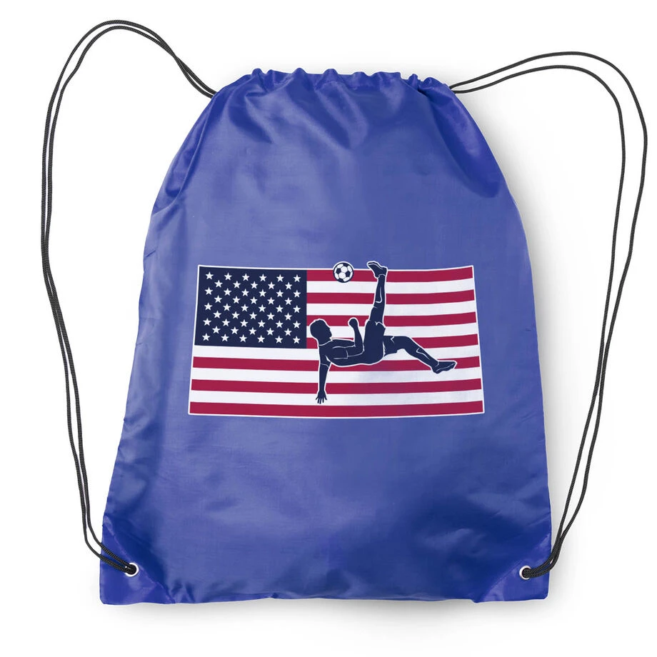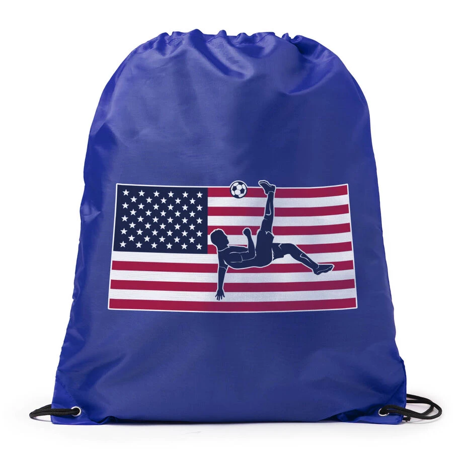 Soccer isn’t just a sport too many, it’s a way of life and what better way to express that love for the sport and your USA pride than with our patriotic soccer drawstring backpack. This 14″ x 18″ tough nylon drawstring backpacks are perfect to carry everyday accessories that you might need for a practice or game. With the fun bright colors and unique designs, these bags also make perfect gifts for that special soccer player or even end of the year team gifts.