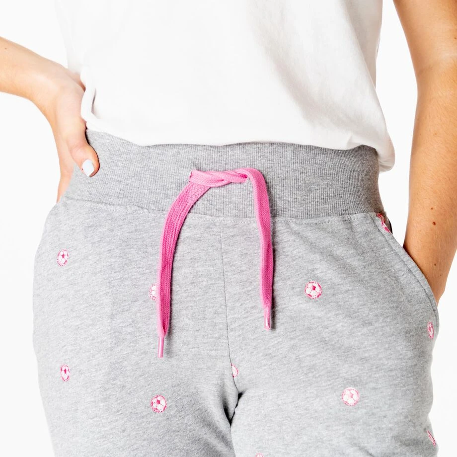 Comfort and basics are a necessity in every athlete’s wardrobe. The soft cotton joggers are perfect for workouts, daily errands, or lounging. Designed with functionality in mind, these super comfortable joggers offer an adjustable drawstring waist for custom fit and side pockets to hold your essentials. The all-over black and white soccer ball embroidery detail adds a special touch to show off your love for the sport.