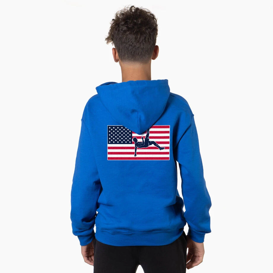 Show off that patriotic pride and love for the sport in our soccer hoodie. Perfect for the 4th of July! Wear your favorite soccer design on the BACK of your sweatshirt with a smaller design on the front. Ideal for athletes, our pullover hooded sweatshirt is warm and comfortable and features our original artwork printed on the front and back. This sweatshirt is not only stylish and fun, it’s also designed from a blend of cotton and moisture-wicking polyester, making it the ideal hoodie for athletes both on and off the field. The double-lined hood can be pulled up for protection from the elements such as wind and rain, and the front pouch pocket is the perfect size for warming cold hands. A great gift for an individual player or the whole team at the end of the season, in addition to any special occasion. Coming in a variety of colors and unique designs these are a great wardrobe collection.